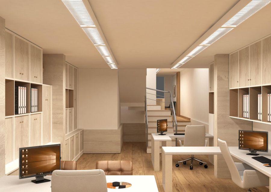 Es imprescindible compaginar todo el proyecto con mobiliarios que estén acorde con el diseño de la oficina haciendo un espacio totalmente armonioso.