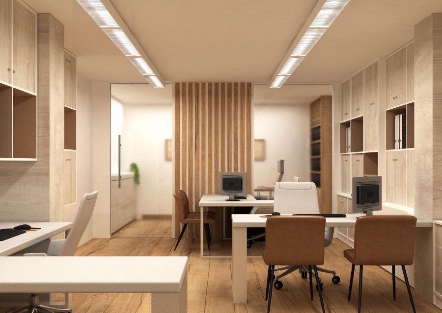 Es imprescindible compaginar todo el proyecto con mobiliarios que estén acorde con el diseño de la oficina haciendo un espacio totalmente armonioso.